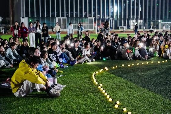 活动现场氛围热烈,柔和灯光铺满草坪,同学们围坐围观,热闹气息感染着每一位师生。大学生艺术团模特队率先登场,自信步伐拉开活动序幕;声乐队接连唱响《我们俩》《听海》等经典曲目,温柔旋律抚平浮躁,打动全场观众。流行舞队随即高能炸场,《fearless》《10minutes》等舞蹈节奏精准、动作流畅,尽显专业功底,将现场氛围推向高潮。备受期待的随机舞蹈环节,同学们自由起舞、尽情释放活力,欢声笑语不断,青春氛围拉满。