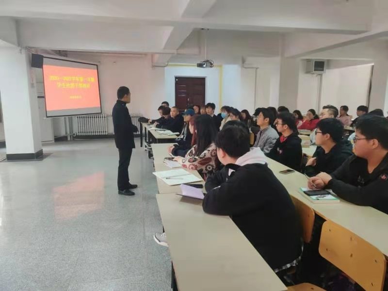 2020年10月29日,学生社团干部意识形态教育工作会议在梅苑二楼会议室召开。学校团委乔建老师、学生社团管理中心、各学生社团负责人等80余人参加了会议。