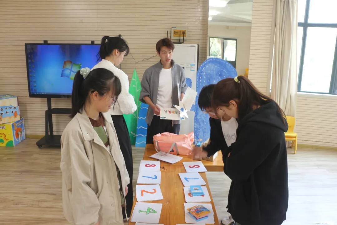 2024年3月22日下午,在通识教育学院的李妮、张华、景康康、郑薇四位老师带领下,9名数学club社团成员前往东大彩色童年幼儿园,带领35名小朋友开展了“数学乐趣探索”活动。此次活动的主题是“数学乐趣无限,快乐与学同行”。为了此次活动的完美进行,在活动开展前一小时,参与此次活动的9名成员在老师指导下,在0号楼南306进行了排练。通过此次社会实践活动,数学club的成员与小朋友们更深一步了解到数学是神奇的世界,训练学生的思维能力是重中之重。在数学教学课堂中探求问题的思考、推理、论证的过程等一系列数学活动都是数学教学中实施思维训练的理论依据。我们要在游戏中找数学,在快乐中找智慧。体验趣味数学,感受数学之美。