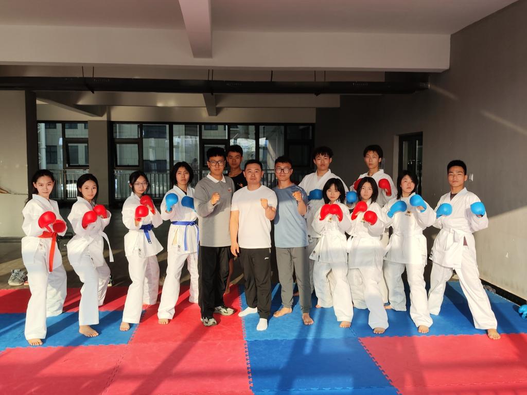 2.空手道社团活动开展于周一晚自习后,日常校队训练在星期一,三,四。主要有吴浪老师指导日常训练,社团活动主要由训练部部长田若鑫负责。