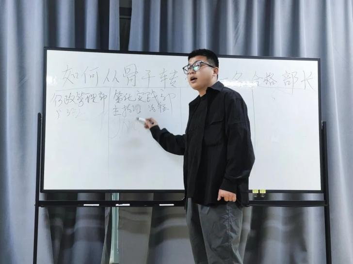 活动概述:思创协会于4月9日晚上9:10在创新创业学院路演厅招开了骨干见面会,本次见面会由思创协会主席白佩鑫主讲。此次会议,是思创协会全体骨干成员的首次集结,旨在全面讲解关于第六届思创协会部门更新调整的通知,进一步推动思创协会各部门的长期发展,帮助各部门骨干明确转为合格的部长的标准。