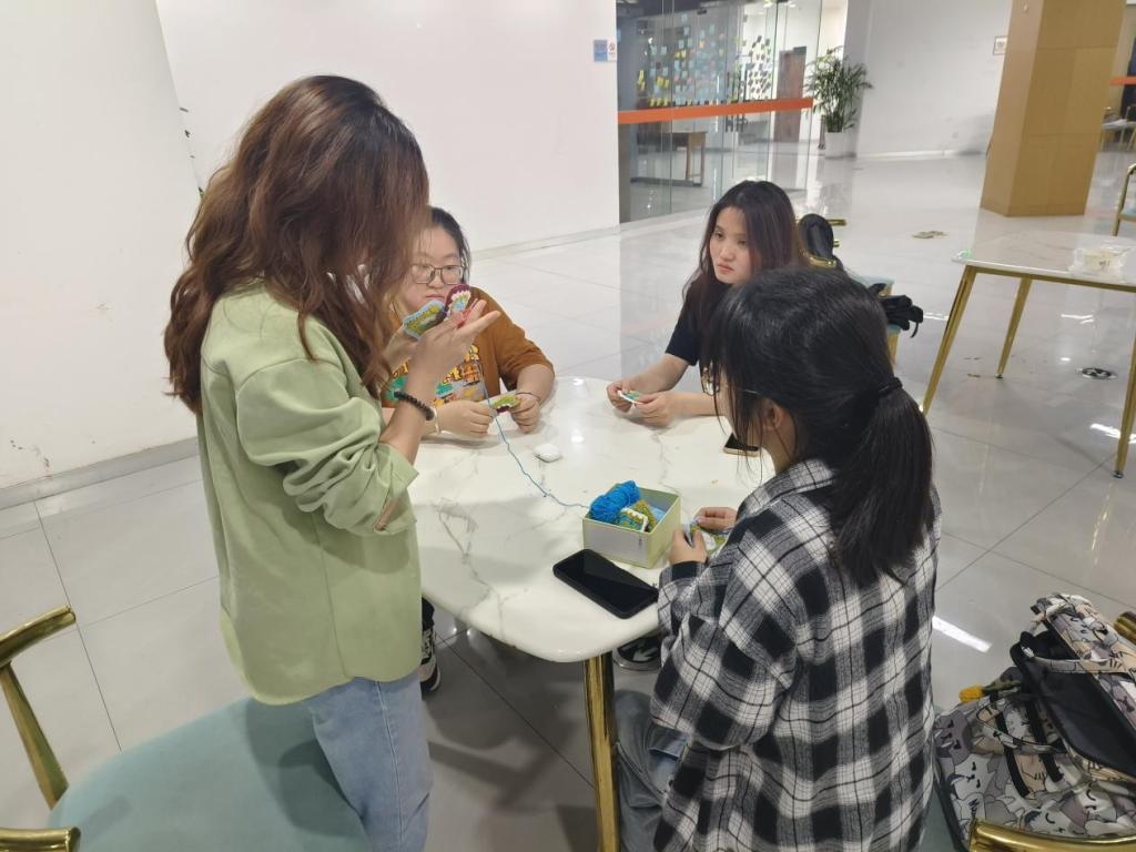 本周我们社团学习如何钩织祖母格花片,并学习如何缝合。成员们都非常积极参与并成功习得新技能。