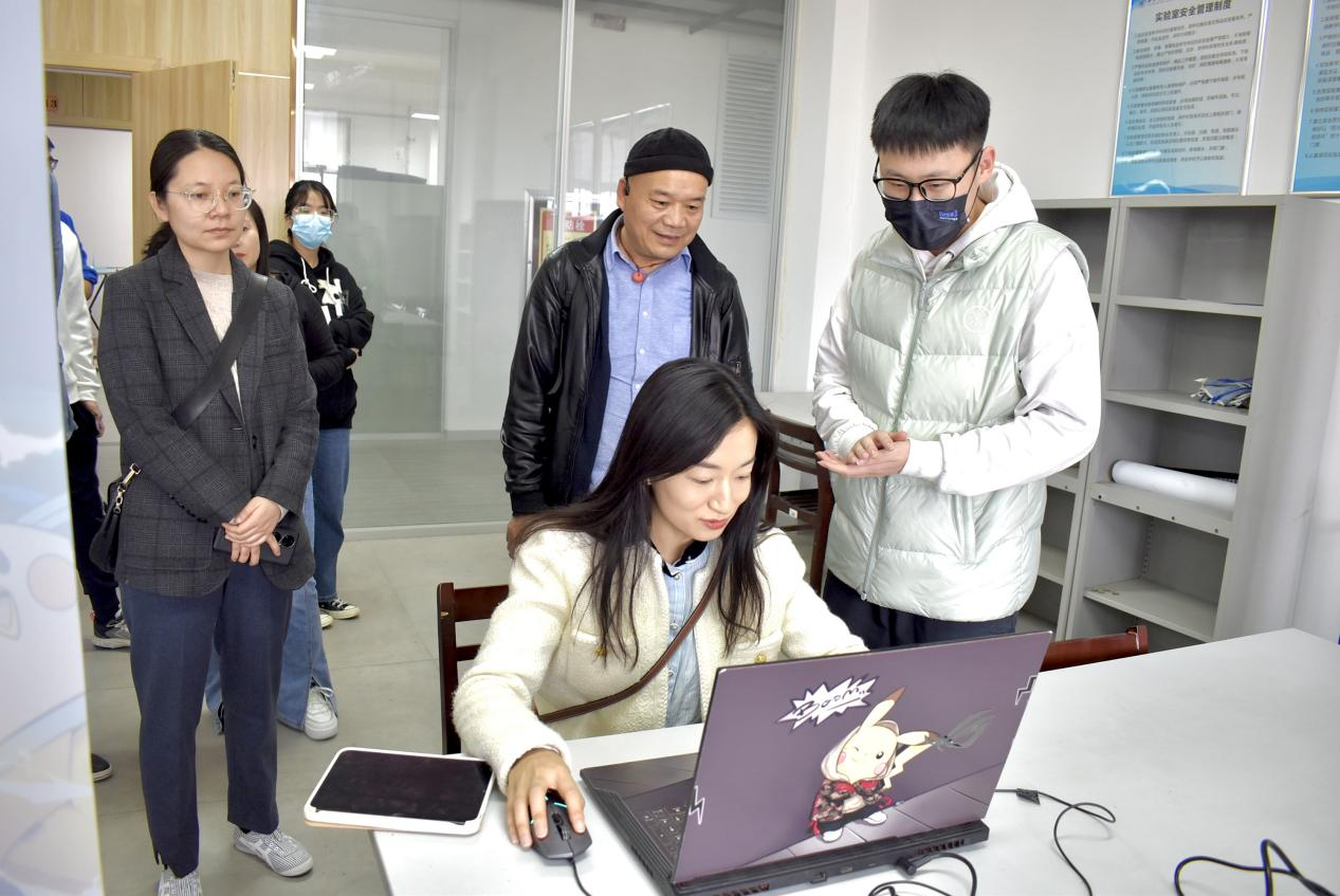 刘璐一行在崔岩的陪同下先后参观了大创项目实验室和各工作室,听取相关负责人的讲解,对于各工作室和实验室所取得的成就表示肯定和赞扬,参观结束后,在2号实训楼北507进行座谈。