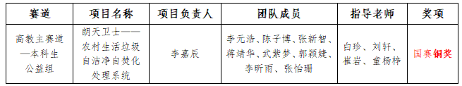 近日,由教育部等12个中央部委和重庆市人民政府共同主办,重庆大学承办的第八届中国国际“互联网+”大学生创新创业大赛全国总决赛顺利落下帷幕。世界杯官网“朗天卫士——农村生活垃圾自洁净自焚化处理系统”项目团队获得国赛铜奖,实现历史性突破,平陕西民办高校最好成绩。