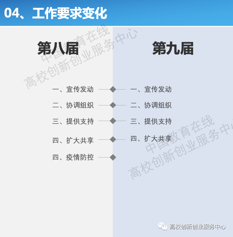 5月23日,《第九届中国国际“互联网+”大学生创新创业大赛通知》正式发布,根据通知内容,本届大赛有以下几点变化: