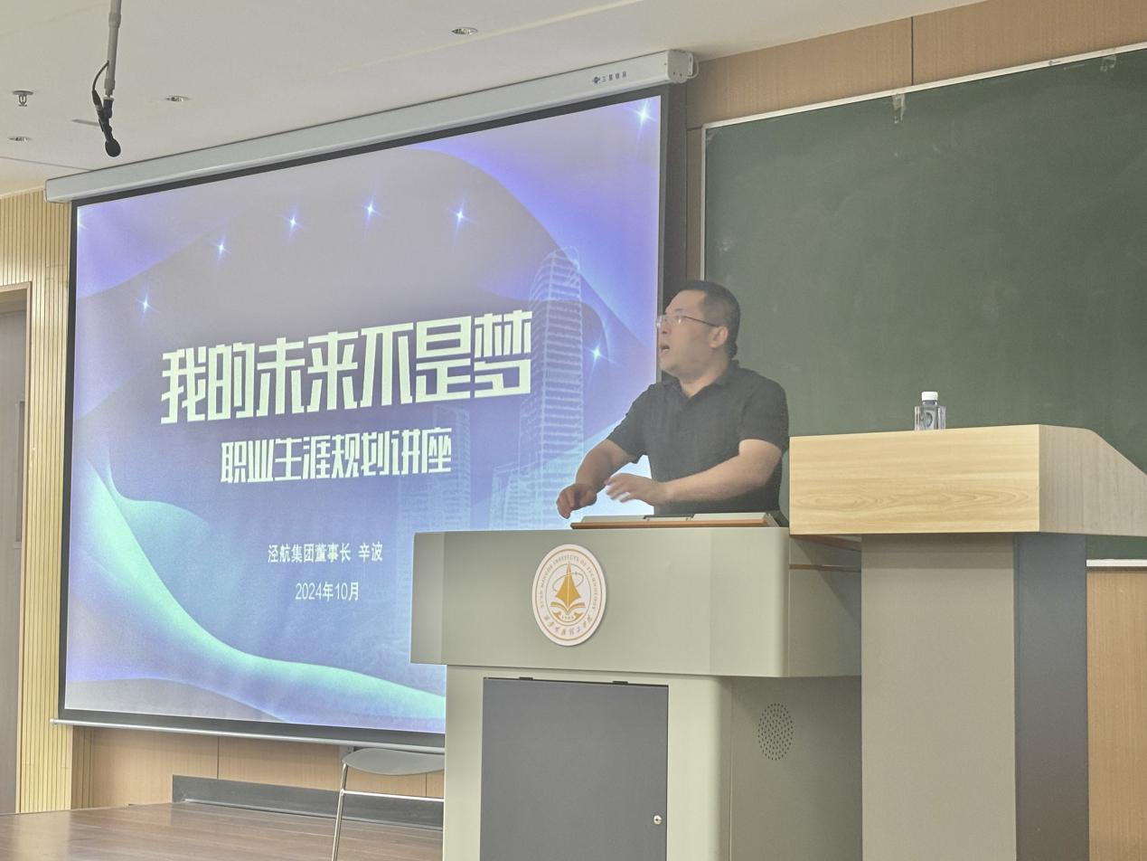 在经济与管理学院“逐梦启航”大学生职业发展辅导员工作室的对接下,特邀校企合作单位陕西泾航企业管理集团有限公司董事长辛波作为本期大讲堂的主讲嘉宾。活动伊始,何文举向与会师生详细介绍了辛波的个人履历。辛波董事长以“我的未来不是梦”为题,结合自身求职、创业历程,从大学生就业选择、大学生就业自我认知、影响大学生就业的因素、职业生涯管理、塑造个人品牌及职场形象和职业技能探索等六个方面为学生做了职业生涯规划的分享交流,鼓励同学们珍惜大学时光、明确梦想,做好学业和职业规划,勇敢追梦。