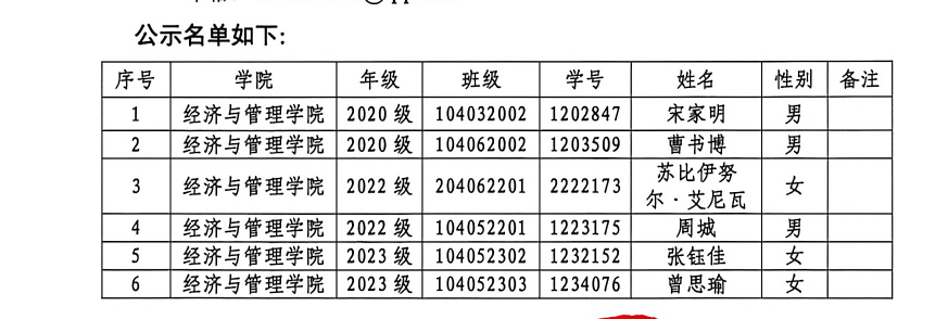 现有经济与管理学院6名学生根据学校学籍管理相关规定,拟作退学处理,具体情况如下: