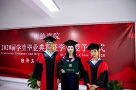随后,王副院长对经济与管理学院2020届全体毕业生们顺利完成学业表示衷心的祝贺,并宣布经济与管理学院2020届毕业生学位授予仪式正式开始。郭院长与教师代表为经管院2020届优秀毕业生们拨穗正冠并授学士学位证。