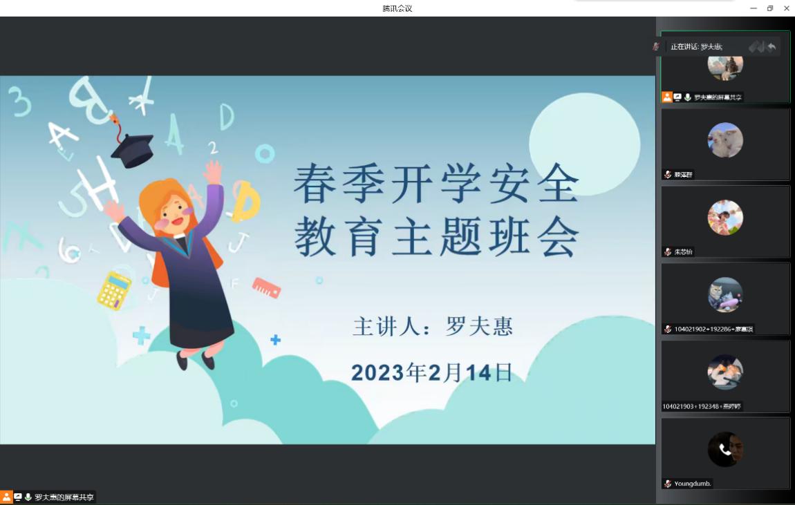 新学期,新气象,为做好开学后学生的思想稳定,收心工作,保证开学各项工作顺利进行,经济与管理学院全体辅导员于2月11--14日通过云端主题班会的形式,从返校安全、收心教育、心理健康教育、反电信诈骗教育、春季传染病教育等方面给所带学生讲了“开学第一课”,学院全体学生参加了教育活动。