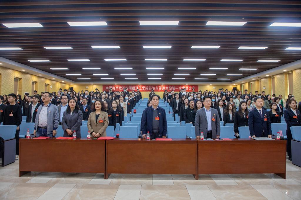 大会号召,学院各党支部和广大师生党员在习近平新时代中国特色社会主义思想的指引下,在学校党委的正确领导下,团结一心,牢记为党育人、为国育才初心使命,凝心聚力谋跨越,锐意进取促发展,为建成在全省同类院校中具有领先地位、特色鲜明的经济与管理学院而团结奋斗!