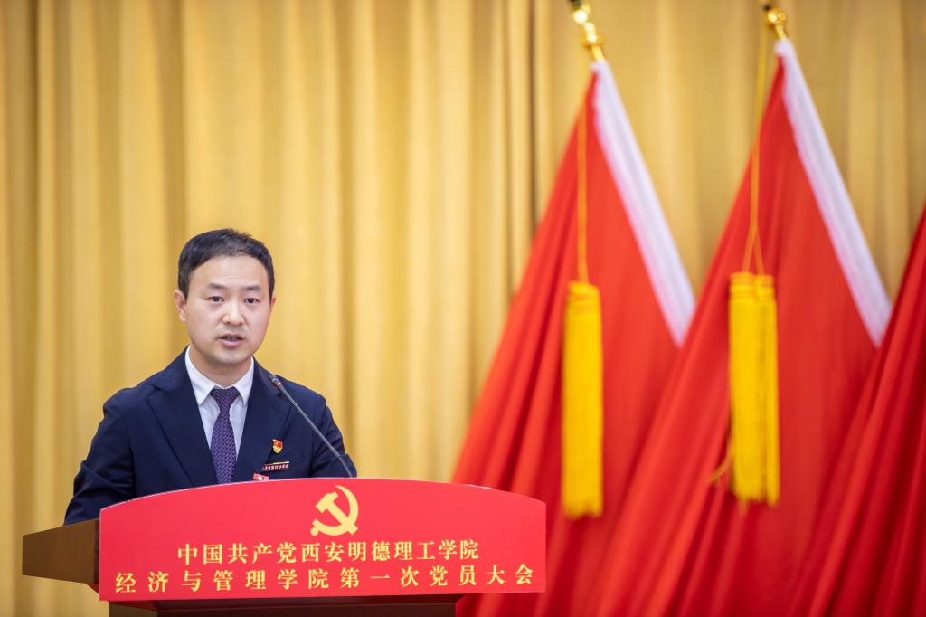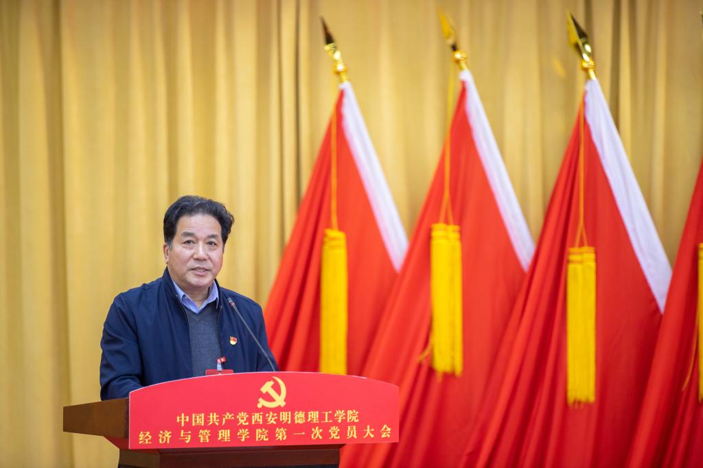 郭鹏院长对大会的胜利召开和新当选的委员表示热烈祝贺,对师生党员在学院发展中做出的贡献表示感谢,希望经济与管理学院广大师生党员能不忘初心、牢记使命,在学院发展的新征程中积极发挥先锋模范作用,推动经济与管理学院高质量发展。
