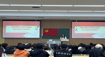 课上,高翠茹从中国式现代化的历史演进、现实成就及展望壮阔前景等三个方面展开讲述。高老师从历史维度出发,为学生梳理了中国从封建社会向现代社会转型的曲折历程,特别是改革开放以来,中国如何在探索中前行,逐步形成了具有中国特色的社会主义现代化道路。期间,她结合新时代十年我国在科技、经济、文化等领域所取得的重大突破,以详实的数据和鲜活的案例引导学生认识中国式现代化物质层面的飞跃以及精神文化的繁荣与自信。在展望中国式现代化的壮阔前景时,高老师谈到,中国式现代化是中国共产党领导的社会主义现代化,既有各国现代化的共同特征,更有基于自己国情的中国特色。中国式现代化的实践探索和不断推进,就是一个在继承中发展、在守正中创新的历史过程。她鼓励青年学子勇于担当、敢于创新,以实际行动践行党的初心和使命。