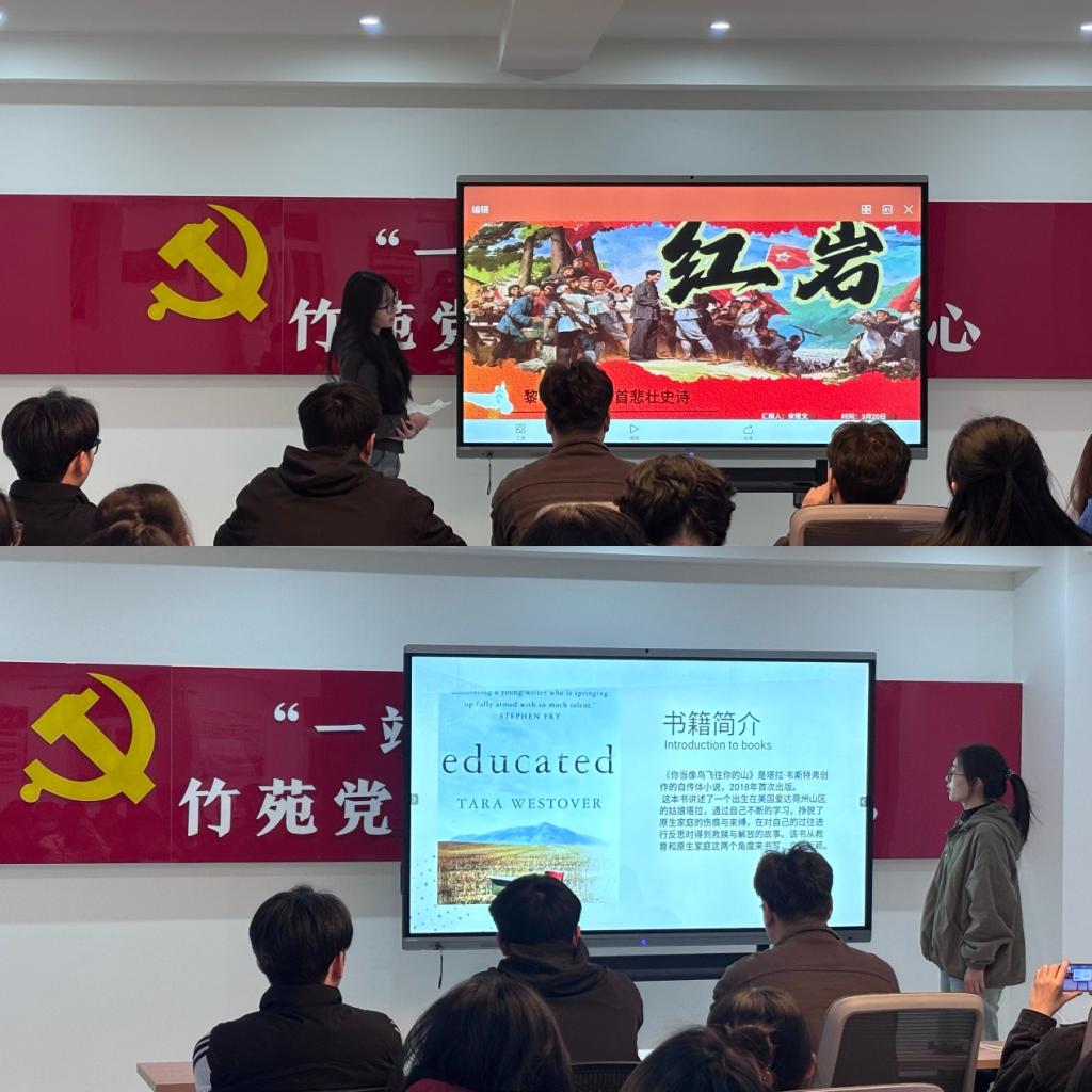 读书分享环节,申宇寒、宋思文、张佳硕3名同学分别做了读书分享。申宇寒从解放军战士在冰天雪地中与土匪斗智斗勇的传奇经历方面分享《林海雪原》;宋思文通过生动的讲述和视频展示方面分享了书籍《红岩》,重现了那段波澜壮阔、充满血与火的革命历史;张佳硕从主人公如何在极端的家庭环境中冲破束缚,通过教育实现自我救赎与成长的故事方面分享了励志书籍《你当像鸟飞向你的山》。现场学习氛围浓厚,大家不仅收获了知识,也体验到了读书的乐趣。