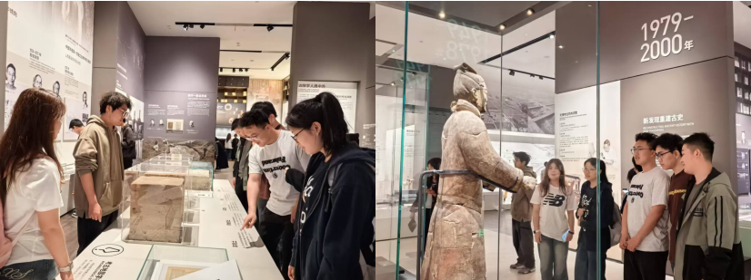 陕西考古博物馆作为我国首座考古学科专题博物馆,珍藏着众多珍贵的考古文物,承载着丰富的历史文化信息,展厅分为考古历程、文化谱系、考古发现、文保科技四个篇章。在讲解员的带领下,师生们有序参观了各个展厅,系统学习了陕西各个时期考古重点项目和文物保护技术的发展和应用,了解了自旧石器时代至周原遗址时段的中华文化谱系变化。参观过程中,一件件文物映入眼帘,师生们不时驻足凝视,被古代人民的智慧和创造力深深震撼。大家也纷纷表示,中华文化底蕴深厚,博大精深,作为中华儿女都应自觉成为优秀传统文化的保护和传承者,不断增强保护文化遗产的意识,让宝贵遗产世代传承、历久弥新。
