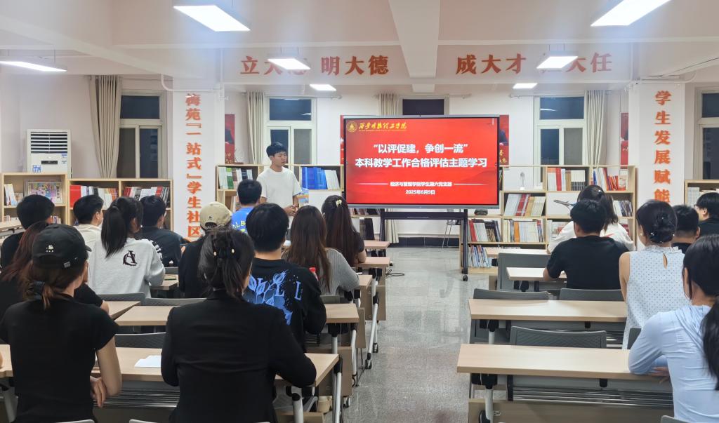 为更好发挥学生党员在教学评建工作中的积极作用,给同学们营造良好的评建氛围,6月9日,经济与管理学院学生第六党支部在“一站式”学生社区梅苑学生发展赋能中心开展“以评促建,争创一流”主题党日活动。支部全体党员、发展对象及入党积极分子代表参与活动,活动由党支部书记张朋主持。