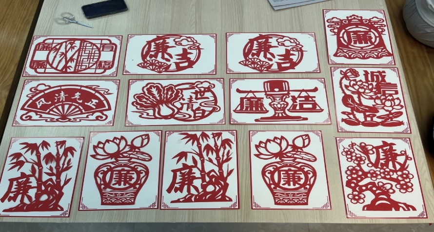 活动将剪纸艺术与廉洁文化教育相结合,是一种创新的文化实践。活动现场,倪星星向大家介绍了剪纸的历史、基本技法和技巧。同学们充分发扬细致入微、一丝不苟的工匠精神,用自己的一双双巧手精心雕琢每一个细节,“廉洁”“风清气正”“一世清白”“诚信”等一幅幅以清廉为主题的作品跃然纸上,惟妙惟肖、栩栩如生。通过亲手制作廉洁主题剪纸作品,不仅锻炼了学生的动手能力,更让大家深刻体会了廉洁自律的重要性,使之成为廉洁教育的生动教材。