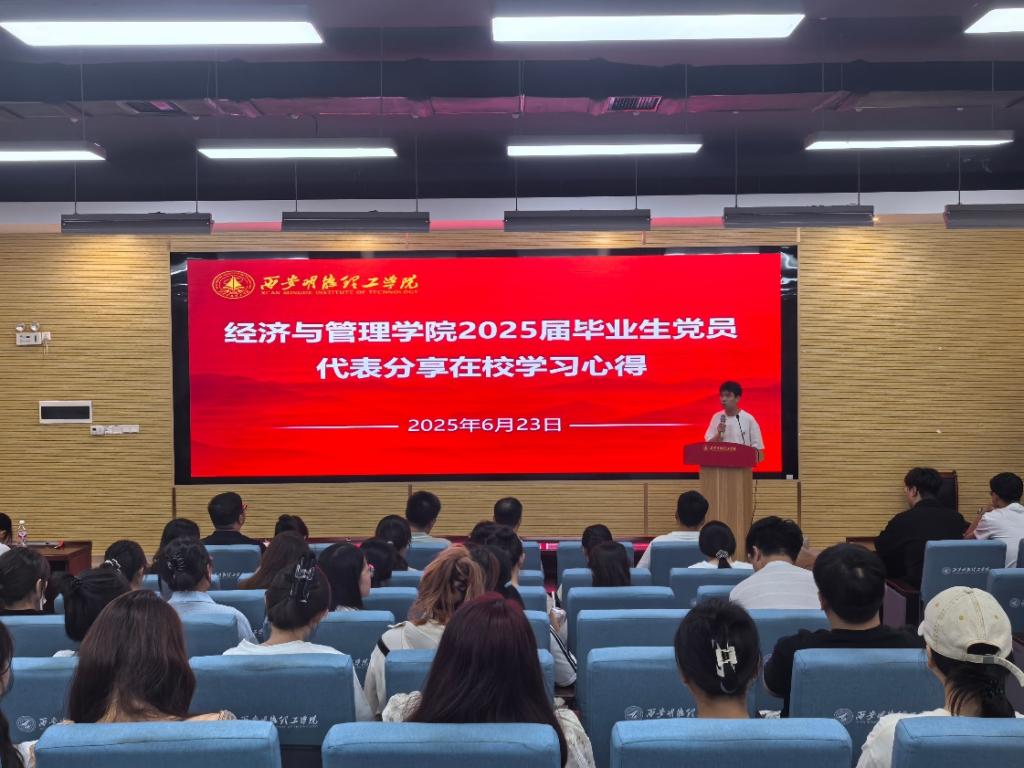 为深入贯彻中央八项规定精神学习教育,切实增强毕业生党员党性修养和责任意识,锤炼党性作风,筑牢信仰根基,以饱满姿态奔赴新征程。6 月 23 日,经济与管理学院在建德楼201组织召开 2025 届毕业生党员教育大会,学院党委书记兼行政副院长何文举、副书记冯纪潮、各学生党支部书记及全体毕业生党员参加了会议。会议由党建专干杨亚军主持。