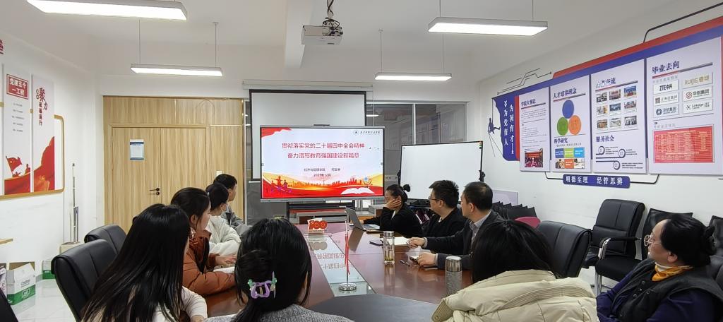 为深入学习贯彻党的二十届四中全会精神,12月8日,经济与管理学院党委书记何文举在明志楼北606宣讲党的二十届四中全会精神,进一步统一思想、凝聚共识、推动落实。学院党委理论学习中心组学习会成员参加了学习。
