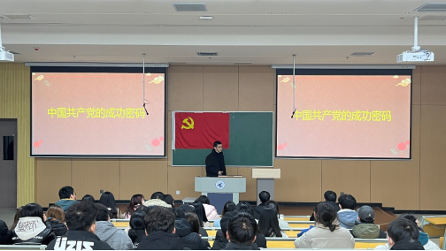 课上,吴长川以“中国共产党百年历程的成功经验”为题,紧紧围绕党的二十大精神,结合中国共产党的发展历程,从党的指导思想、目标,党以强大政治执行力作为党的贯彻之源,严密的组织体系作为党的贯彻之基,坚定不移把党的二十大部署和要求落到实处等四个方面,阐释了引领、无我、坚持、变革、自主、发展、统筹、奋斗、团结、贯彻等十个中国共产党能够成功的密码。在吴老师的引导下,同学们围绕如何厚植家国情怀、勇担时代责任进行了讨论,现场气氛活跃而热烈。课程最后,吴老师号召每一位经管学子明确自己在新时代的责任与担当,勉励大家在实现个人价值的同时,努力成长为堪当民族复兴重任的时代新人。