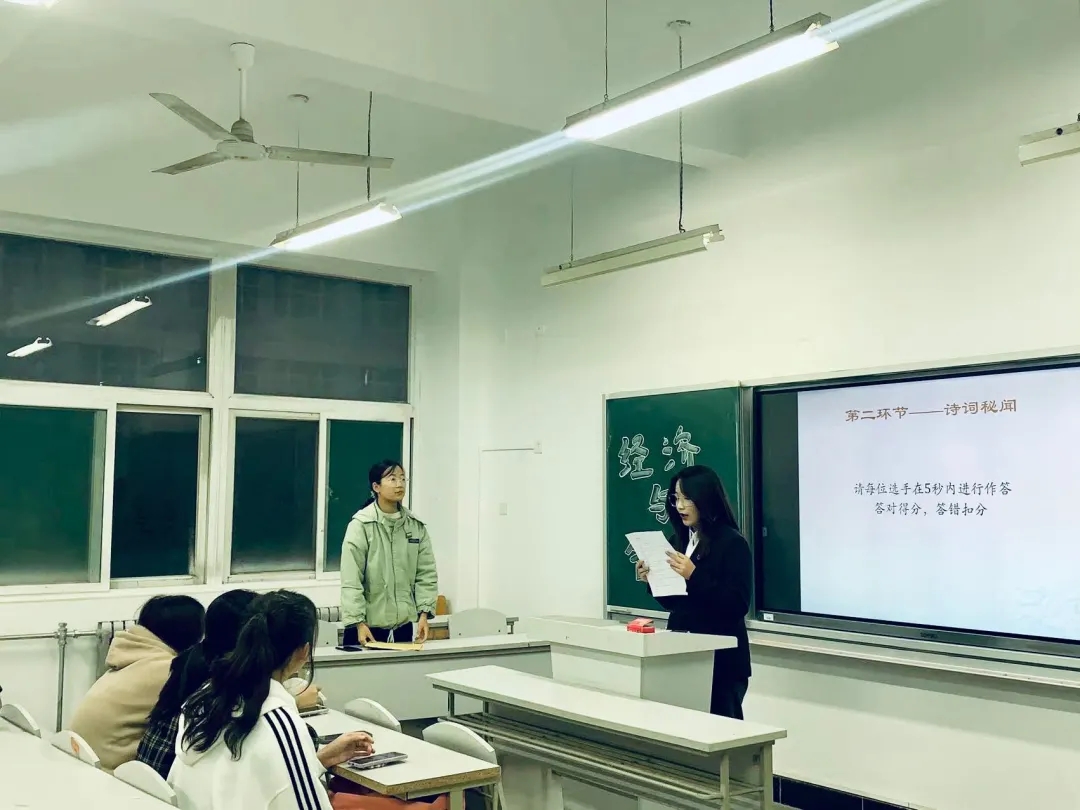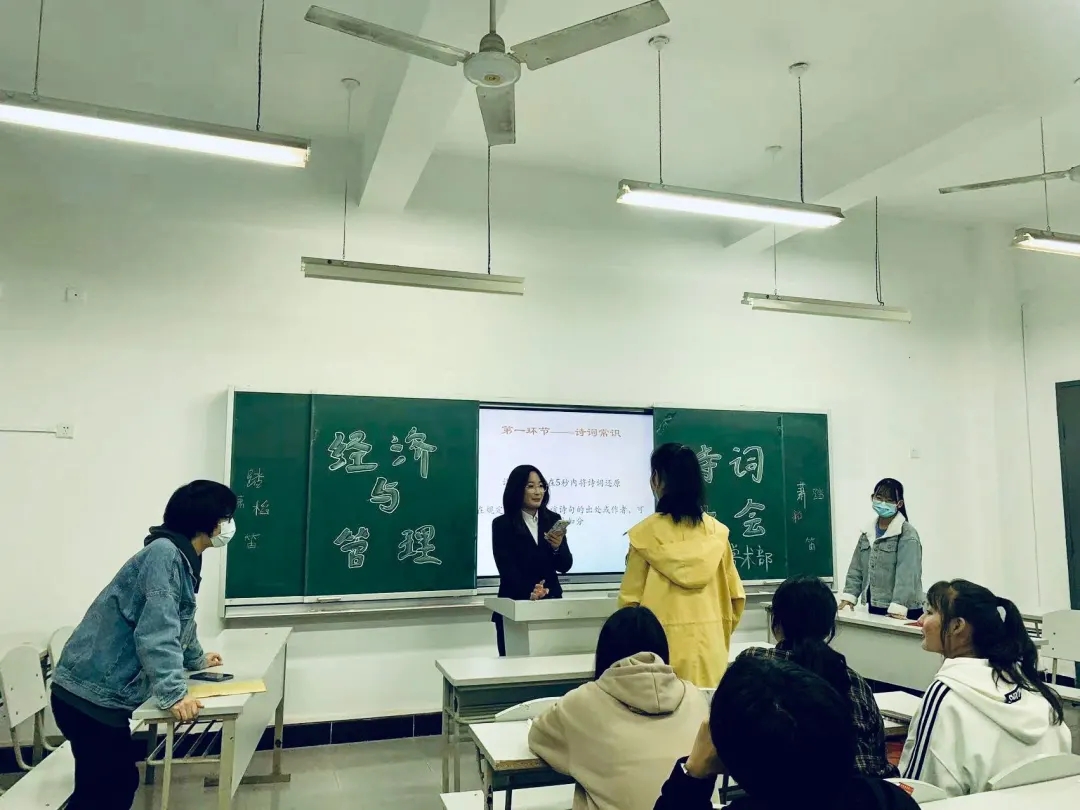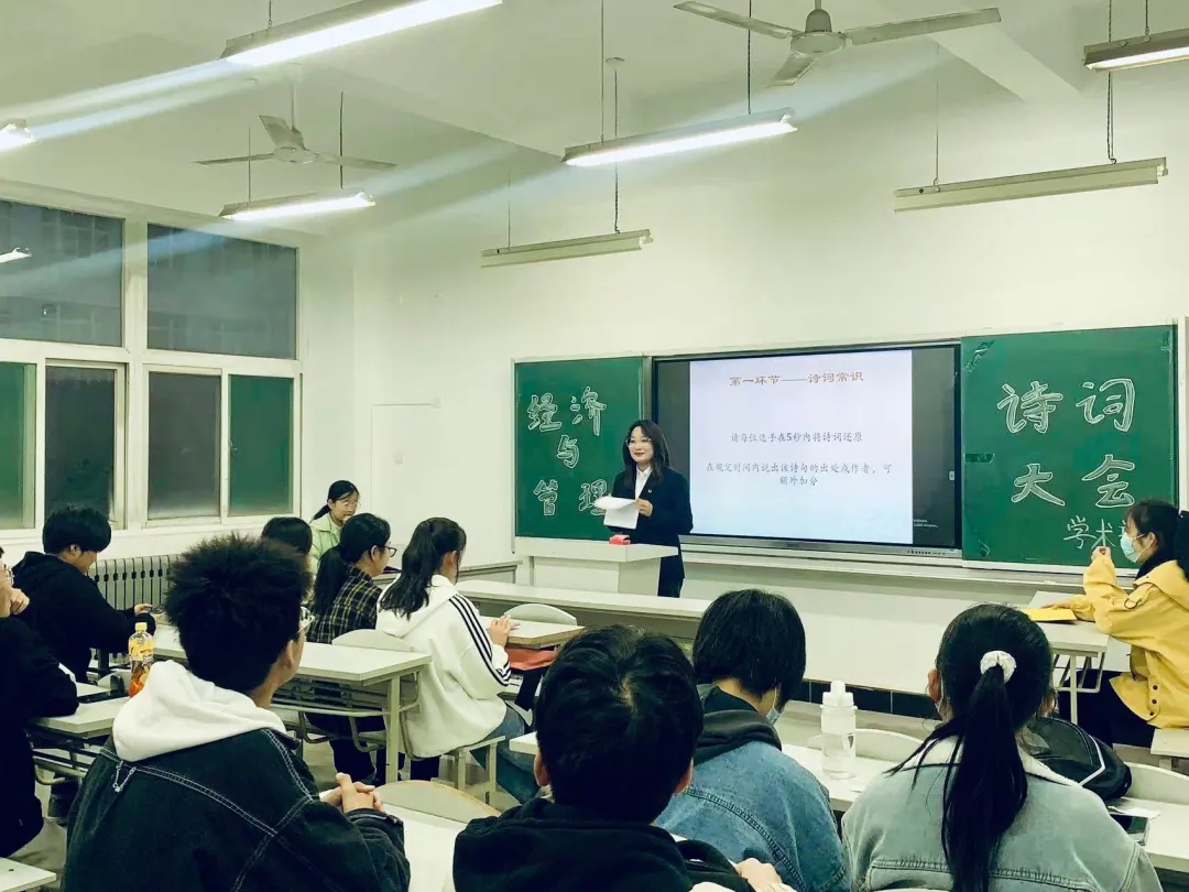 2021年11月4日17:50-18:50,由经济与管理学院团委学生会学术部承办的诗词大会在1号教学楼109举行。