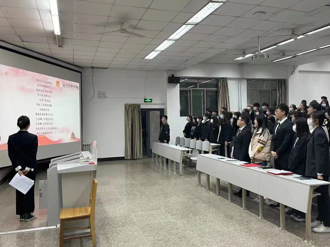 会议第五项,第五届团委副书记赵浩然上台发言,希望新一届的同学们能够继承学院文化精神,描绘未来发展蓝图,迈向一个新的征程;