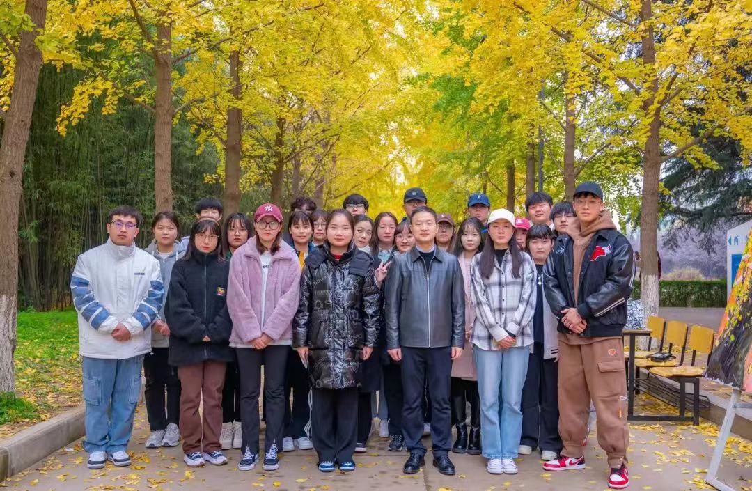 芳菲路的热闹景象不仅吸引了同学们积极参与的热情,同时也有幸邀请到了经济与管理学院党委书记何文举老师、团委书记耿露老师以及倪星星老师,参与到活动中来,老师们对本次“银杏艺术节”的举办给予了肯定与鼓励,并与各部门负责人合影留念。