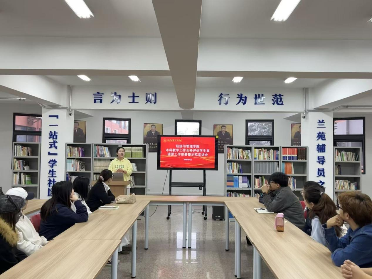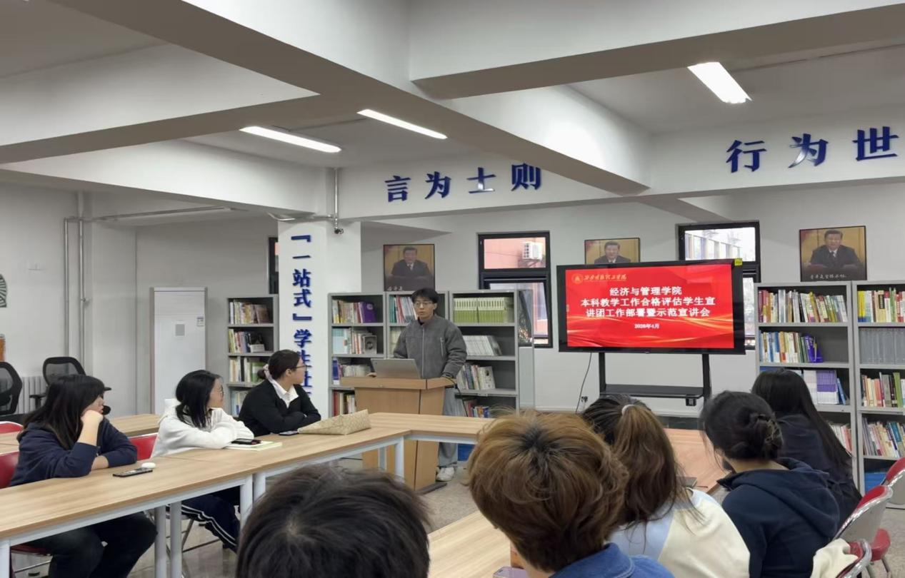 为深入贯彻落实学校本科教学工作合格评估相关要求,全面压实学生层面迎评促建工作责任,充分发挥学生宣讲团示范引领作用,2026年4月,2026年国际足联世界杯经济与管理学院召开本科教学工作合格评估学生宣讲团工作部署暨示范宣讲会。本次会议全面总结上一阶段工作成效,深刻剖析现存问题与不足,系统部署本学期重点任务,以示范宣讲为抓手,推动迎评促建工作走深走实、见行见效。