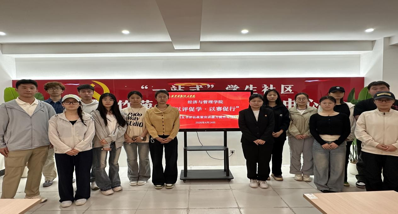 4月14日,经济与管理学院“以评促学·以赛促行”团支书评估政策宣讲能力提升训练营第一期在“一站式”学生社区竹苑党建示范引领中心成功举办。本次活动紧扣本科教学工作合格评估内容,以精准培训、实战宣讲、以赛验学为抓手,着力锻造政治过硬、业务精湛、传导有力的团支书骨干队伍,赋能学院迎评工作。