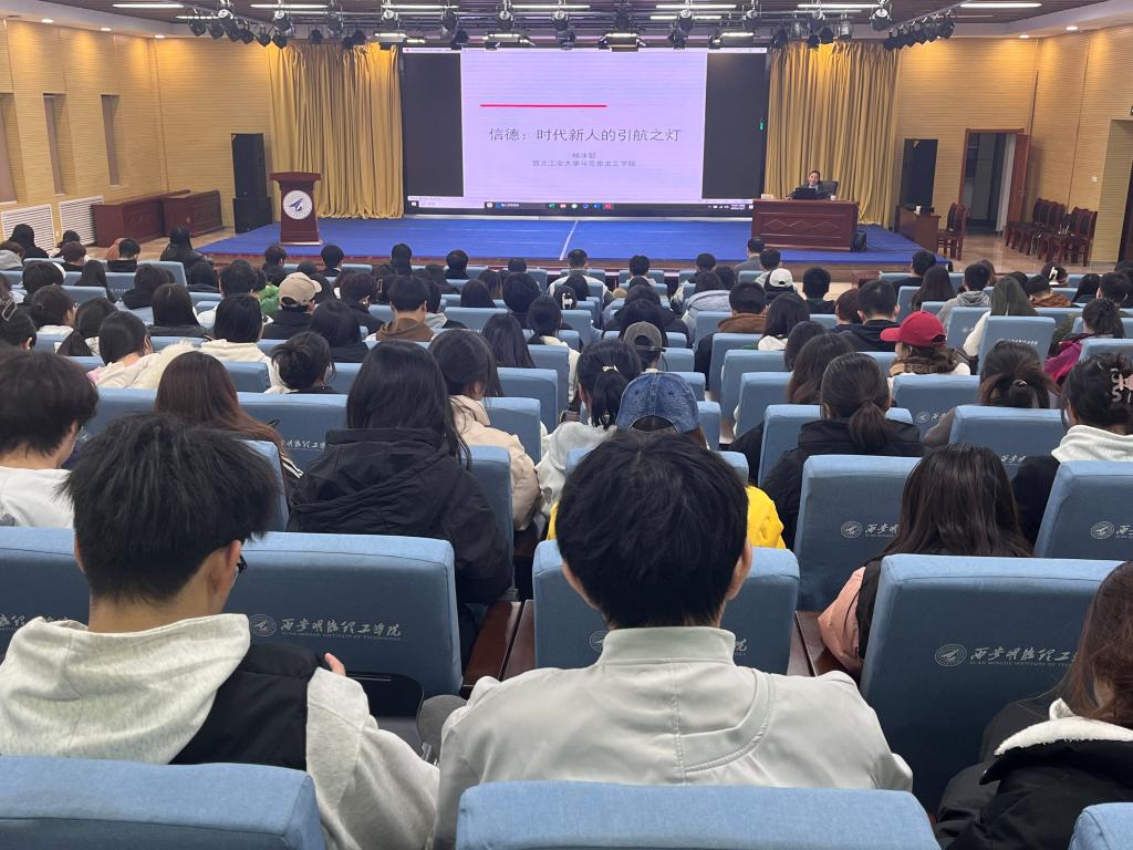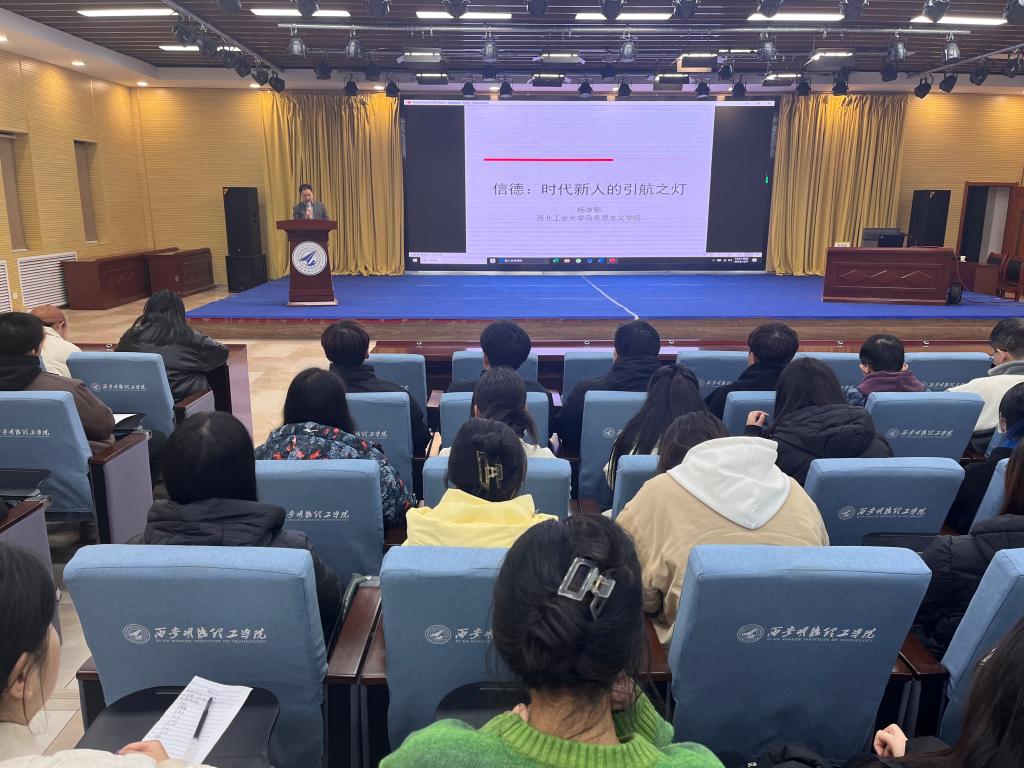 讲座伊始,何文举向师生们介绍了杨冰郁教授,并说明举办本次主题讲座的意义。杨冰郁教授从信德的本体论、信德的实践论、信德的认识论和青年学生如何践行信德等四个方面,向学生们做了题为“信德:时代新人的引航之灯”讲座,通过中华传统文化中信德的概念和现实案例,深入浅出地阐述了诚信的重要性,教育引导同学们在日常学习生活中如何做到诚实守信,结合习近平总书记给青年的寄语和给青年的回信内容等讲话精神,勉励同学们积极践行社会主义核心价值观,争做德才兼备的新时代好青年,为全面建设社会主义现代化强国贡献力量。讲座中,学生们聚精会神地听讲,积极参与互动,气氛热烈融洽。