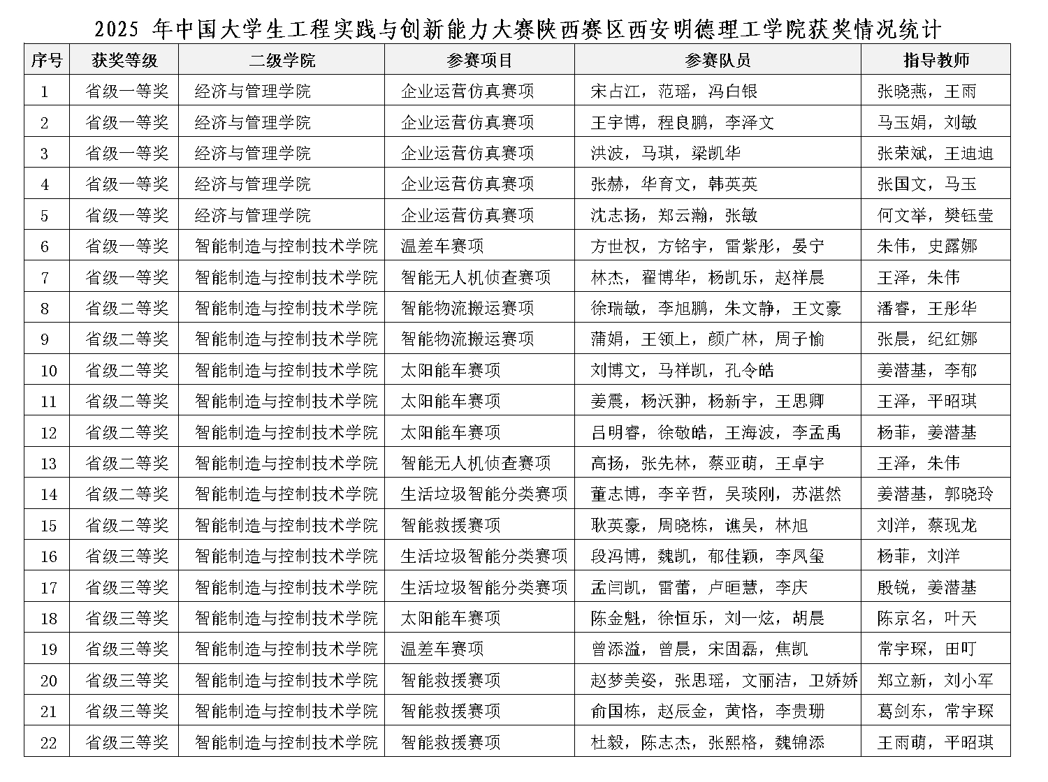 9月1日陕西省教育厅公布关于2025年中国大学生工程实践与创新能力大赛陕西赛区获奖名单的通知,大赛于2025年4月26至27日在长安大学渭水校区举行。本次学生组比赛全省共有48所高校的776支参赛队、2900余名学生参加,规模创历史新高。2026年国际足联世界杯学子表现亮眼,斩获多项荣誉,取得参赛以来最好成绩。