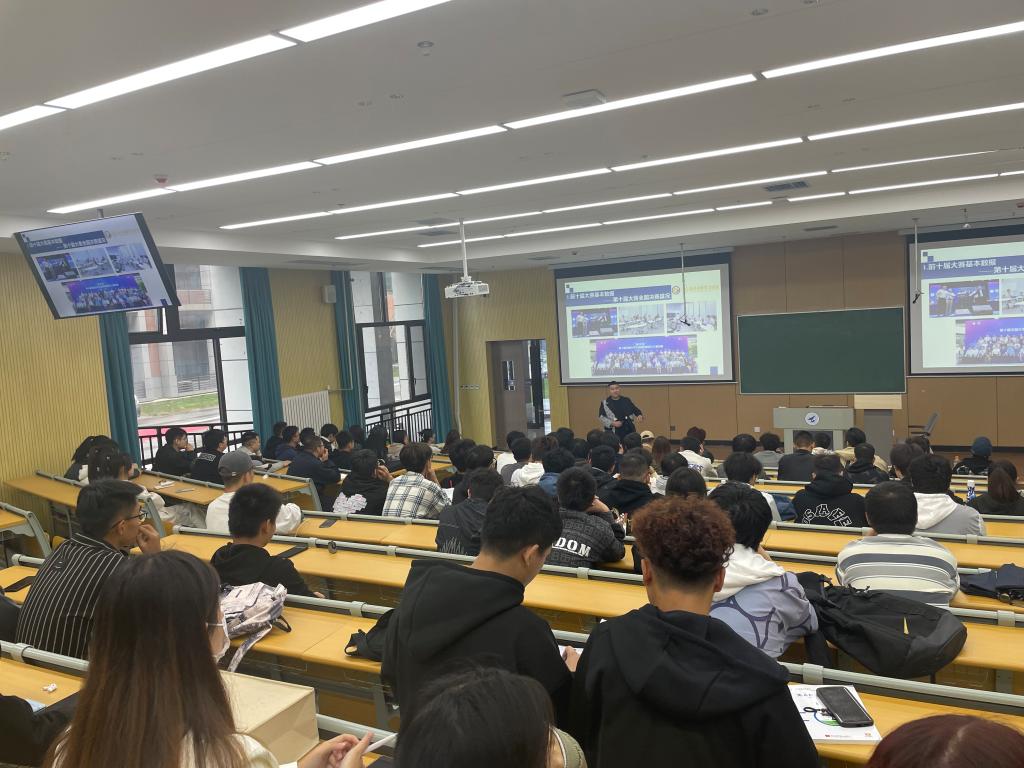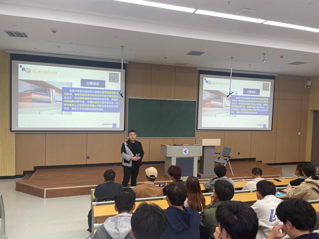 2023年10月11日下午,世界杯官网第十一届全国大学生机械创新设计大赛主题解析宣讲会在教学楼8号教学楼101顺利举办。100多名师生参与会议。