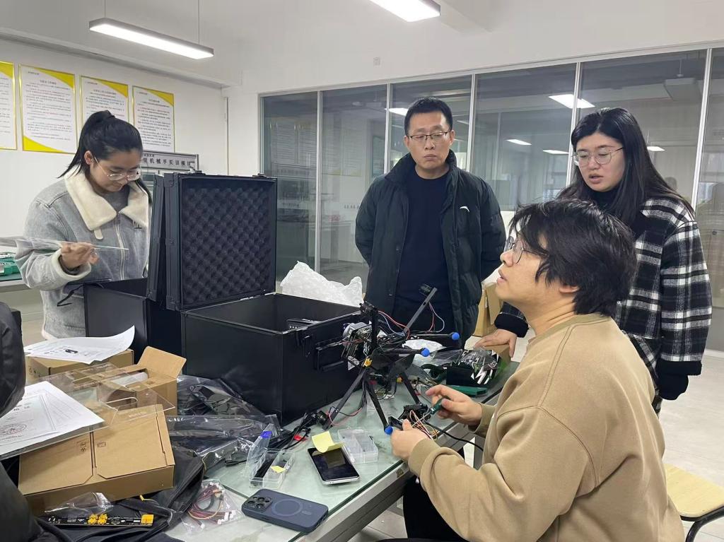 培训现场,工程师围绕无人机硬件组装、电路调试、系统编程等核心内容,结合实际项目案例进行拆解教学。同学们以小组为单位,在工程师的指导下,从零部件辨识、线束连接到设备联调,全程沉浸式地参与实操,现场既有思维碰撞的交流声,也有工具操作的实操音,学习氛围浓厚。