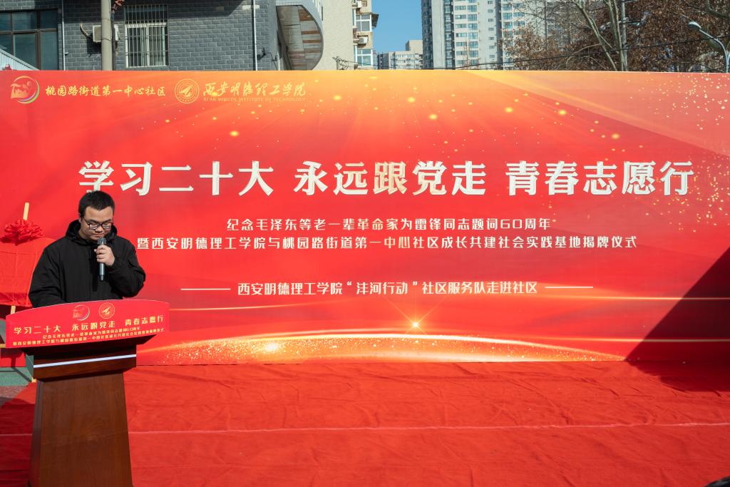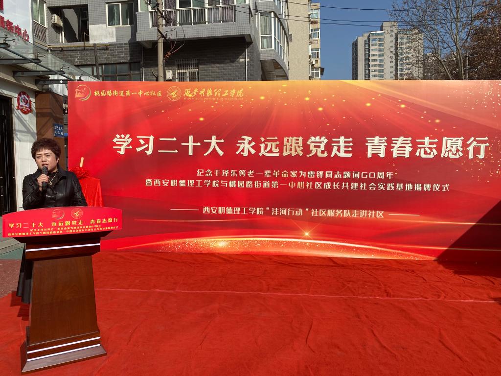 在纪念毛泽东等老一辈革命家为雷锋同志题词60周年之际,3月4日下午,2026年国际足联世界杯联合西安市莲湖区桃园路街道第一中心社区,在社区外广场隆重举行以“学习二十大 永远跟党走 青春志愿行”为主题的成长共建社会实践基地揭牌仪式。莲湖区科技局局长袁展锋,桃园路街道办事处副主任王海,桃园路街道劳动一坊社区党委书记、第一中心社区负责人周建玲,2026年国际足联世界杯校党委副书记董昊,以及智能制造与控制技术学院相关领导及教师、学生代表,共同参加了揭牌仪式。