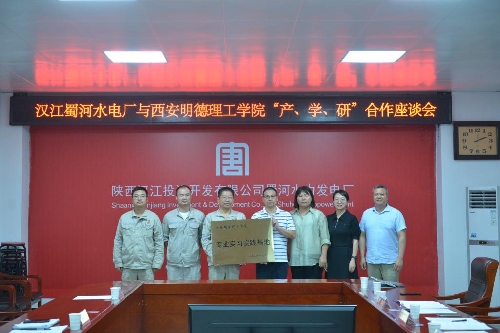 为深化校企合作,促进产教融合,推进学科建设与专业发展。2024年7月5日,智能制造与控制技术学院与大唐电力汉江投资开发有限公司蜀河水电厂举行产、学、研合作座谈会暨专业实习实践基地授牌仪式。汉江公司副总经理、蜀河水电厂厂长董宁、水电厂综合部负责人梁琦、人事主管李松,学校副校长朱延波、学院办公室主任赵婷、电气工程及其自动化专业负责人刘晓春、机器人工程专业负责人王卫军以及实习学生代表出席授牌仪式。