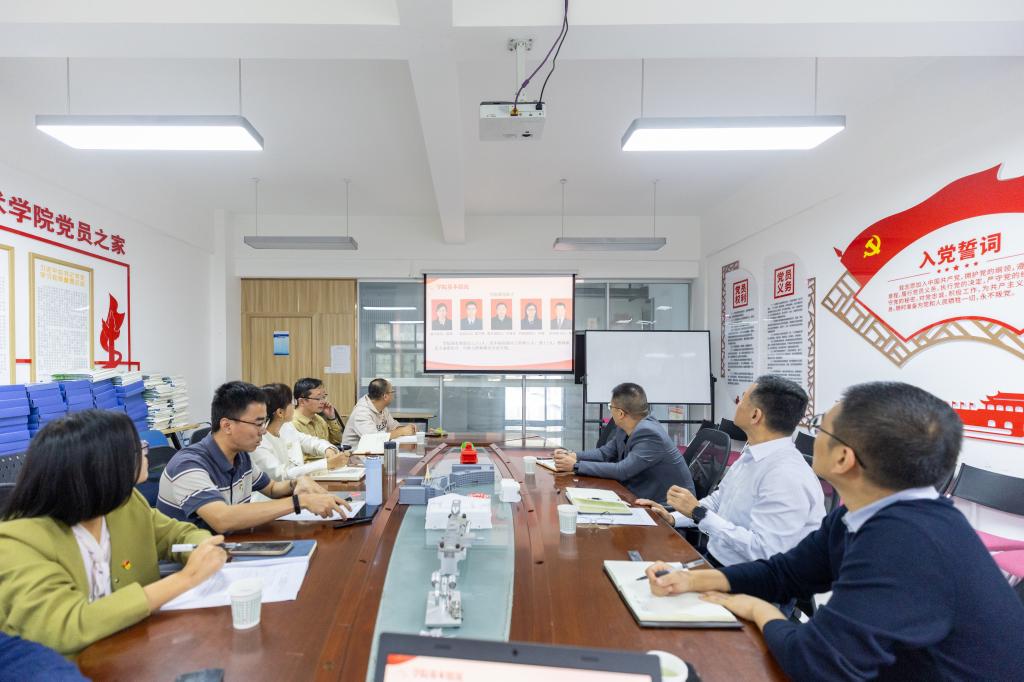 会上,陈雪彬围绕学院基本情况、党建工作、党建品牌建设,以及存在的问题和下一步工作思路等方面做了总体汇报,重点介绍了学院党委落实全面从严治党主体责任情况,以及学院以人才队伍建设和科研创新为抓手,探索“党建+”工作机制,构建了“一二三”党建工作体系的典型做法。其他班子成员、党委委员结合分管工作进行了补充汇报,并就工作中存在的问题与困难、做好下一步工作的思路提出了意见和建议。