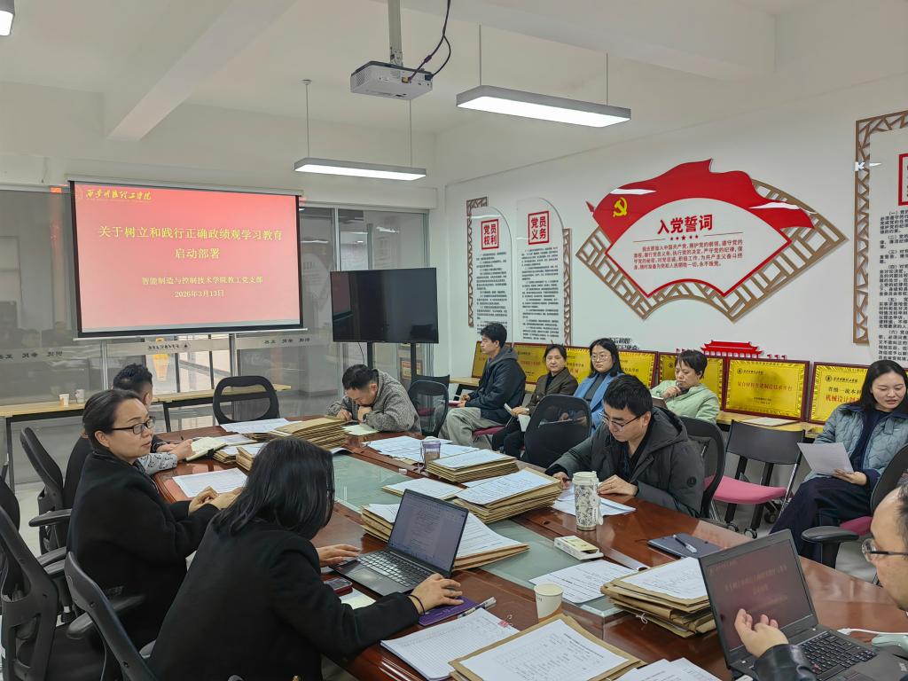 3月13日上午,智能制造与控制技术学院党委在明志楼北304会议室召开树立和践行正确政绩观学习教育启动部署会。学院党委委员、师生党支部书记参加会议,会议由学院党委书记陈雪彬主持。