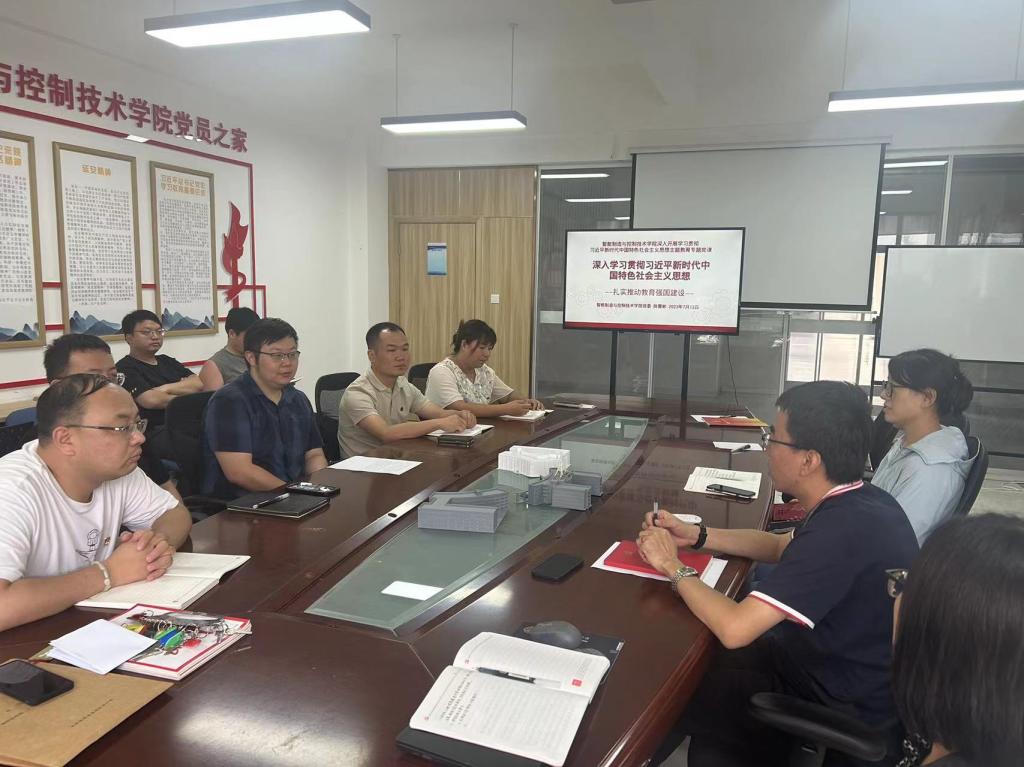 为推进学习贯彻习近平新时代中国特色社会主义思想主题教育持续走深走实,学深悟透习近平总书记关于教育的重要论述,7月12日下午,智能制造与控制技术学院党委书记陈雪彬在学院“党员之家”以《深入学习贯彻习近平新时代中国特色社会主义思想扎实推动教育强国建设》为题,讲授主题教育专题党课。学校主题教育督导组成员张亚平莅临指导,学院班子成员、党委委员、部分教工党员参加了党课学习。