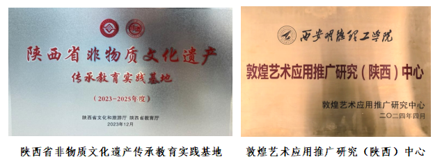 学院获批全国第四批“中国工艺美术大师传承创新基地”,“陕西省非物质文化遗产传承教育实践基地”,对工艺美术人才培养和非物质文化教育实践奠定了坚实的基础。学院受邀参加第四届中国工艺美术博览会与第二届百名大师进校园成果展,中国轻工业联合会党委书记、会长张崇和等领导莅临学院展位,对学院的工艺美术教学成果给予了肯定。