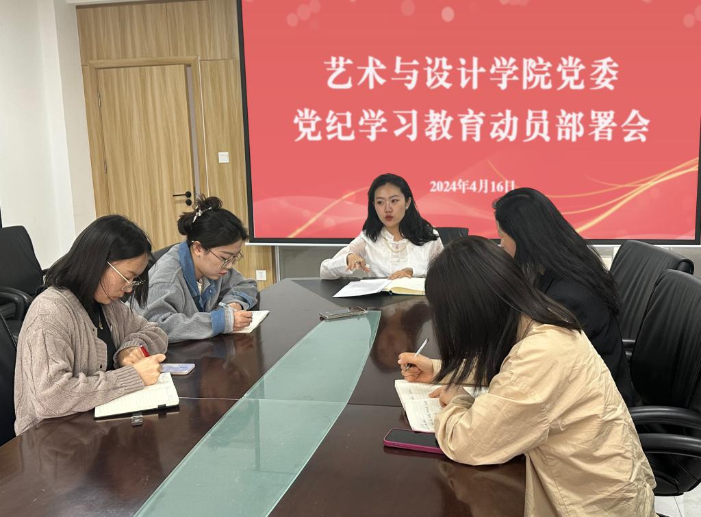 为深入学习贯彻习近平总书记关于党纪学习教育的重要讲话和重要指示精神,认真学习贯彻《中国共产党纪律处分条例》,加强党的纪律建设,推动全面从严治党向纵深发展,艺术与设计学院党委结合工作实际,于4月16日中午召开了党纪学习教育安排部署会。参会人员有艺术与设计学院党委书记雷宇、党委委员吴君、教工党支部书记常静、学生第一党支部书记张睿华、学生第二党支部书记党红娟、学生第三党支部书记朱迪,会议由党委书记雷宇主持。
