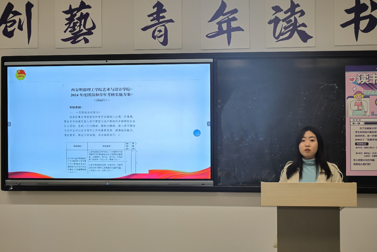 培训会上,艺术与设计学院团委公布了《艺术与设计学院2024年团员和青年考核方案》,明确了在2024年本科教学工作合格评估背景下,各支部、全院青年和团员的学习要求和工作要求,希望全院学生干部能牢记习近平总书记的嘱托,在学校党委、学院党委的领导和团委的指导下,坚持自上而下、刀刃向内,勇于自我革命,回归服务宗旨,树立风清气正的组织形象,同时强化各支部班团一体化意识,为班风学风校风建设和学院高质量发展贡献青春力量。