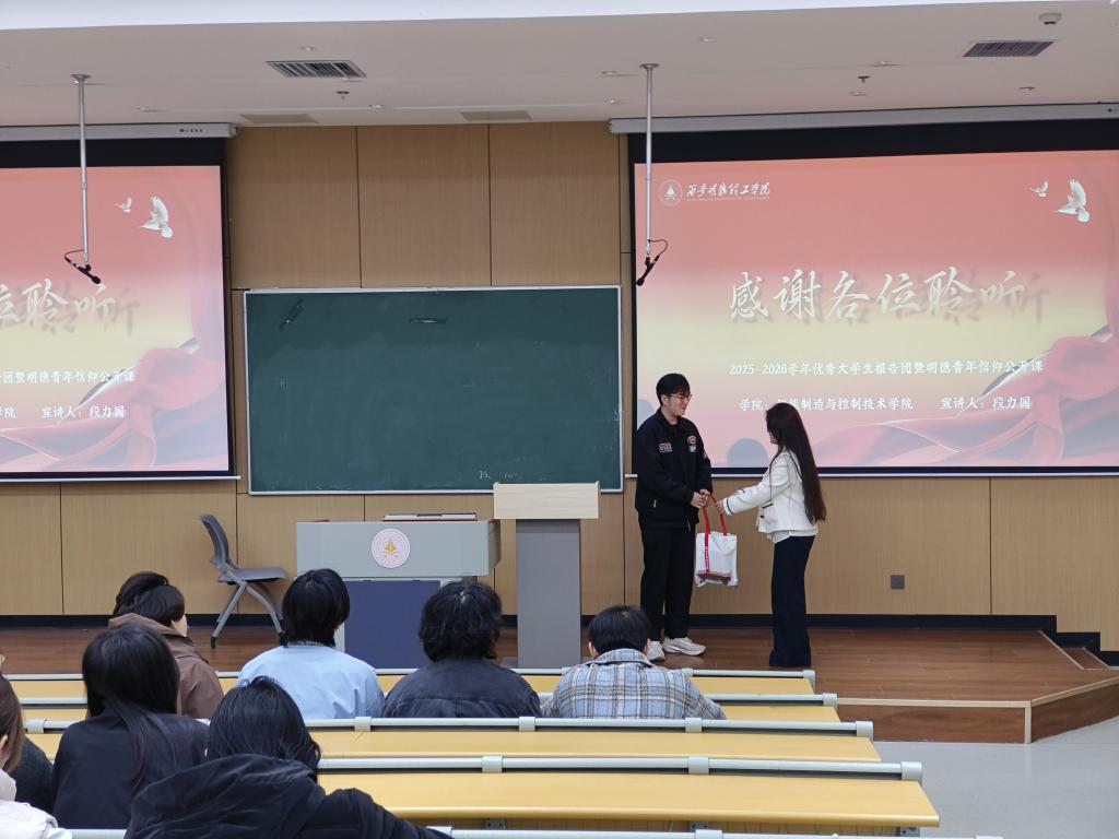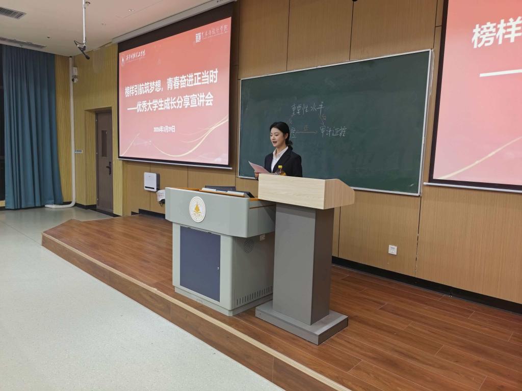 本次宣讲活动精心遴选校内不同学科专业、不同发展领域的四名优秀学生代表登台宣讲,涵盖学业深耕、科创竞赛、志愿服务、思想引领、学生工作等多个维度。四位榜样青年立足自身求学履历与成长实践,全方位分享经验心得、感悟思考,以真实故事传递青春正能量,为在场学子树立可看齐、可借鉴、可追赶的身边标杆。