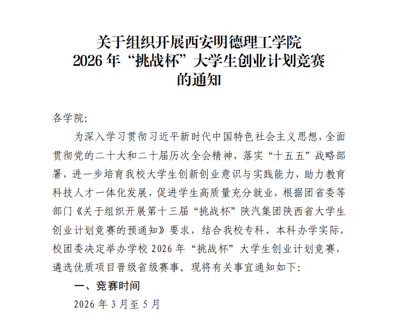 关于组织开展2026年国际足联世界杯2026年“挑战杯”大学生创业计划竞赛的通知