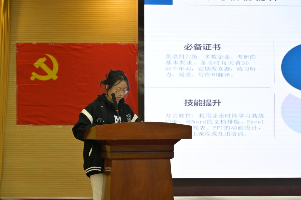 方博雅同学以“大学成长经历与未来规划”为主题,坦诚地讲述了自己从初入大学时的迷茫,到逐渐适应大学生活、明确学习目标的过程。她分享了在专业学习、人际交往等方面的感悟,并结合自身情况,对未来的大学生活做出了清晰规划,为大家提供了宝贵的借鉴。