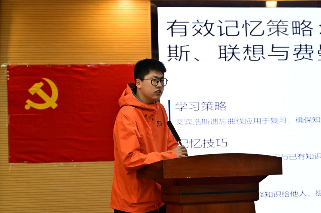 学生党员叶宇杰以“解锁学习密码”为核心,分享了自己的学习方法。他从制定科学合理的学习计划、巧用各类学习资源,到培养良好的学习习惯等多个方面展开,为同学们提供了一系列实用的学习技巧。他的分享让同学们意识到,只要掌握了正确的学习方法,就能更高效地吸收知识,提高学习成绩。