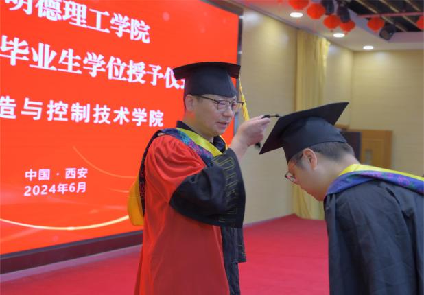 6月27日下午,智能制造与控制技术学院2024届学生毕业典礼暨学位授予仪式在建德楼203报告厅举行。学校副校长朱延波、学院班子成员、教师代表、毕业班辅导员及200余名2024届毕业生参加典礼。典礼由学院党委书记陈雪彬主持。