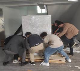 图3 实践教学设备拆封搬运 图4 工业控制计算机投入使用