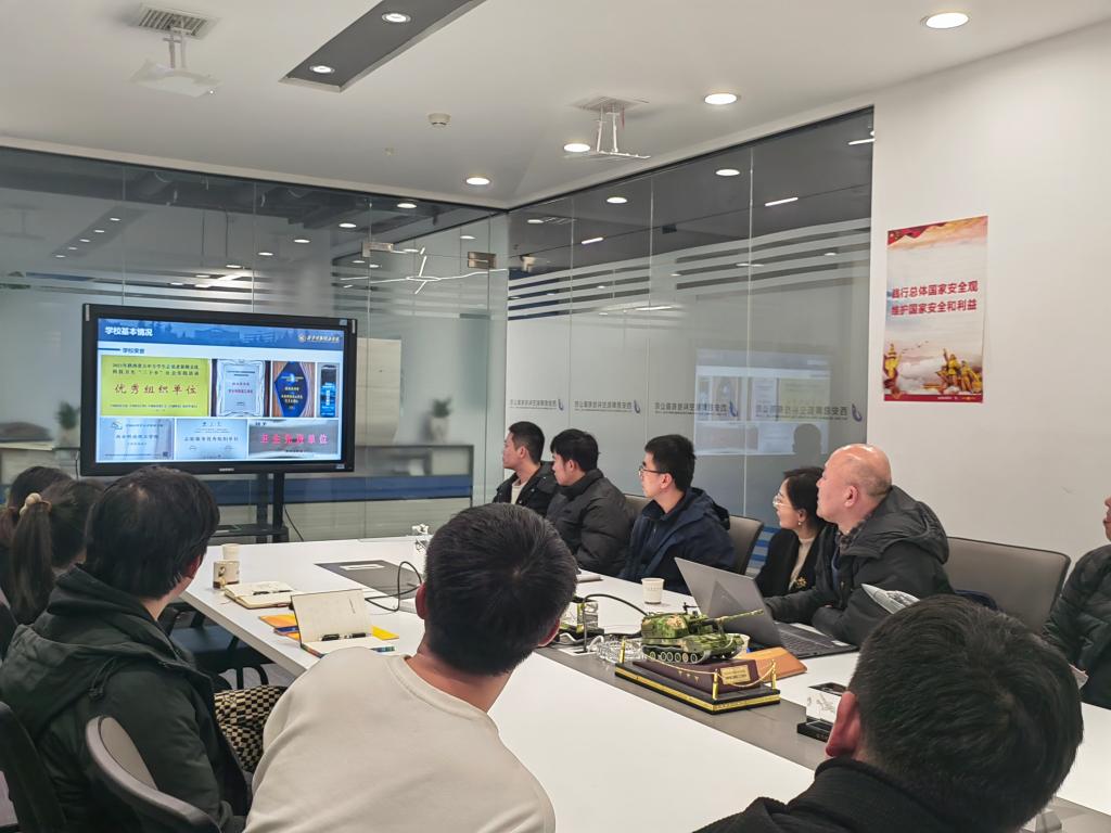 周强从学校基本情况、招生就业情况、校企合作、国际交流与培训、学科竞赛、校园文化、社会实践、教学资源与设备等方面进行了简要介绍。