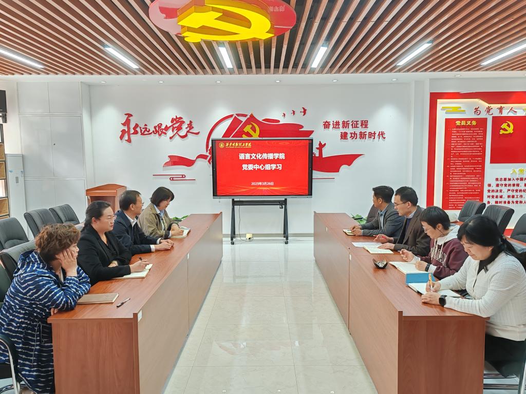 3月26日下午,语言文化传播学院在学校党建活动中心召开党委理论学习中心组会议,深入学习两会精神、习近平总书记的重要文章《健全全面从严治党体系》,并围绕教育思想展开大讨论。学院党委委员、各支部书记参加了此次会议。会议由学院党委书记赵旭东主持。