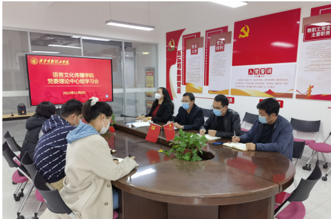11月8日,语言文化传播学院在明志楼406会议室召开党委理论学习中心组学习会,专题学习党的二十大精神。学院党委理论学习中心组成员参加学习。会议由学院党委书记赵旭东主持。