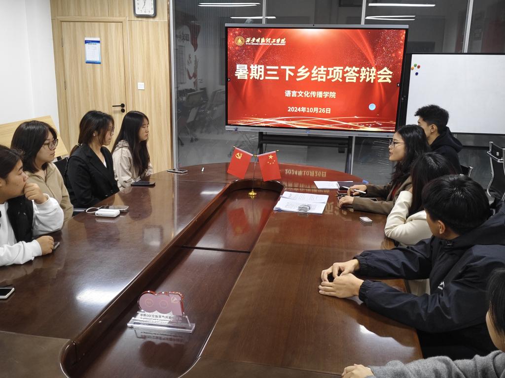 为深入学习贯彻习近平新时代中国特色社会主义思想和党的二十届三中全会精神,引导和帮助青年学生在社会课堂中受教育、长才干、作贡献,争做有理想、敢担当、能吃苦、肯奋斗的新时代好青年,10月28日,语言文化传播学院在明志楼北406举行暑期“三下乡”社会实践结项答辩会。各团队负责人、答辩人参加会议。会议由学院团委书记周清岚主持。
